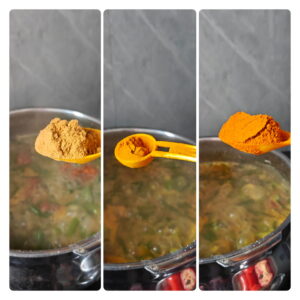 ಅರಿಶಿಣ ಸಾಂಬಾರ್ ಪುಡಿ ಹಾಗೂ ಧನಿಯಾ ಪುಡಿ ಸೇರಿಸಿ